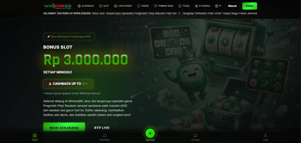 Di era hiburan digital yang semakin pesat, memilih platform taruhan yang terbukti adil dan berani membayar lunas adalah kunci utama. Winlose99 tampil sebagai destinasi nomor satu bagi para pemburu jackpot, menyandang status sebagai situs slot gacor dengan standar operasional internasional. Kami berdedikasi penuh untuk menyajikan pengalaman bermain yang epik dengan visual spektakuler bagi setiap member.
